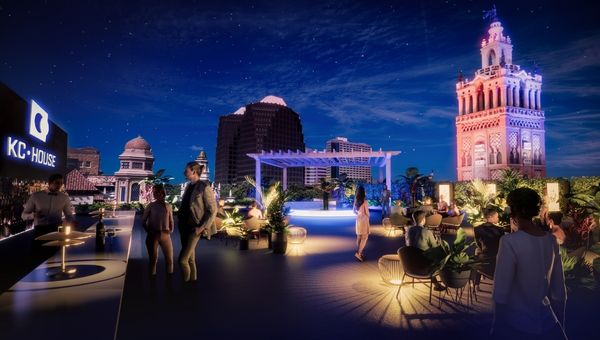 Acceso a KC•House, un centro de negocios y de hospitalidad al que solo se puede acceder con invitación, situado en el Country Club Plaza.